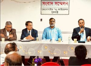 বাংলাদেশকে জঙ্গিদের অভয়ারণ্য বানিয়ে পুনরায় ভিক্ষুক রাষ্ট্রে পরিণত করার গভীর ষড়যন্ত্রের বিরুদ্ধে প্রবাসীদের ঐক্যবদ্ধ হওয়ার আহ্বান জানিয়েছে যুক্তরাষ্ট্রের নিউইয়র্কে অনুষ্ঠিত সংবাদ সম্মেলনে। আওয়ামী লীগ সভাপতি শেখ হাসিনার বিরুদ্ধে প্রহসনের মামলায় বিচার ও আইন-আদালত ব্যবহার করে বিরোধীদের দমনের বিষয়ে সংবাদ সম্মেলনে এ আহ্বান জানানো হয়। ২৭ সেপ্টেম্বর (শনিবার) বিকেল সাড়ে ৬ টার দিকে নিউইয়র্কের জ্যাকসন হাইটস ৭৩ স্ট্রিটস্থ ৩৭-১৫”মামাস রেস্টুরেন্টে এর আয়োজন করে জেনোসাইড ’৭১ ফাউন্ডেশন।