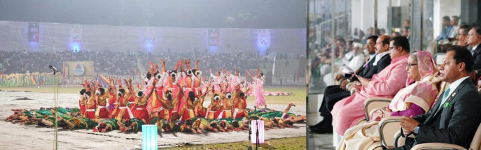 এসময় বিভিন্ন স্কুলের শিক্ষার্থীদের পরিবেশনায় মনোজ্ঞ সাংস্কৃতিক অনুষ্ঠান উপভোগ করেন প্রধানমন্ত্রী ও আমন্ত্রিত অতিথিরা। আতশবাজির শব্দে মুখর ছিলো স্টেডিয়াম এলাকা।
