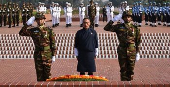 বাংলাদেশে সফররত ভুটানের প্রধানমন্ত্রী শেরিং তোবগে আজ সকালে সাভারের জাতীয় স্মৃতিসৌধে মুক্তিযুদ্ধের শহীদদের প্রতি ফুল »