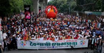 ঢাকা বিশ্ববিদ্যালয়ের চারুকলা অনুষদের সামনে থেকে বৈশাখী শোভাযাত্রা শুরু হয়েছে। এবারের শোভাযাত্রায় পাঁচটি প্রধান মোটিফ »